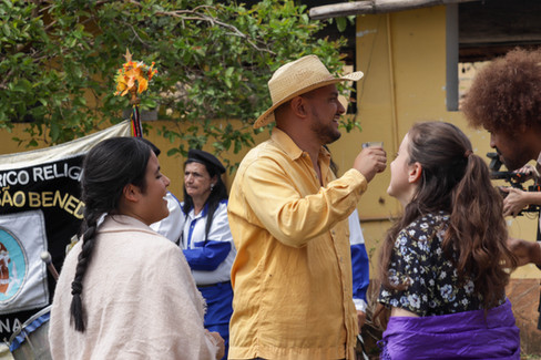 O Moçambique de São Benedito de Lorena teve participação marcante na criação do curta-metragem GOTA, reforçando a identidade regional e a força das tradições populares do Vale do Paraíba. No filme, que acompanha a história de uma família da zona rural em diálogo com uma cultura viva e ancestral, o Moçambique aparece em cena fundamental: o encontro entre os personagens Ana (Leyah Silva) e Expedito (Igor Martinez). O momento simboliza a união entre fé, memória, paixão e resistência — um elo profundo entre território, corpo e espiritualidade.